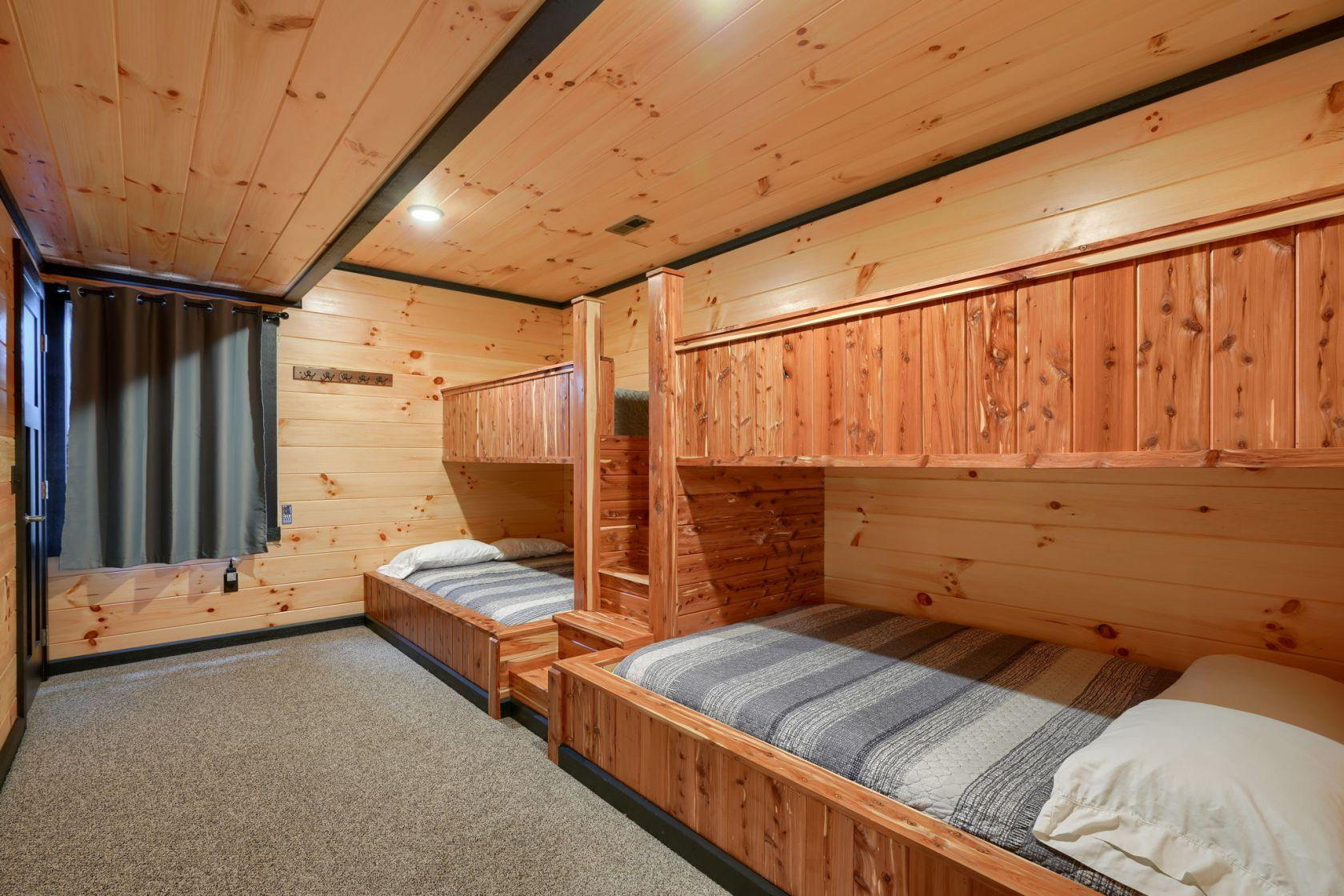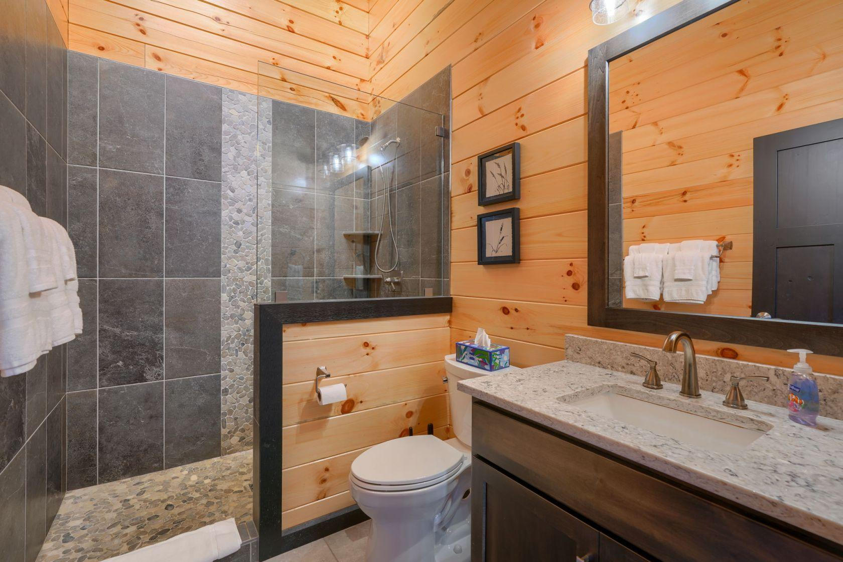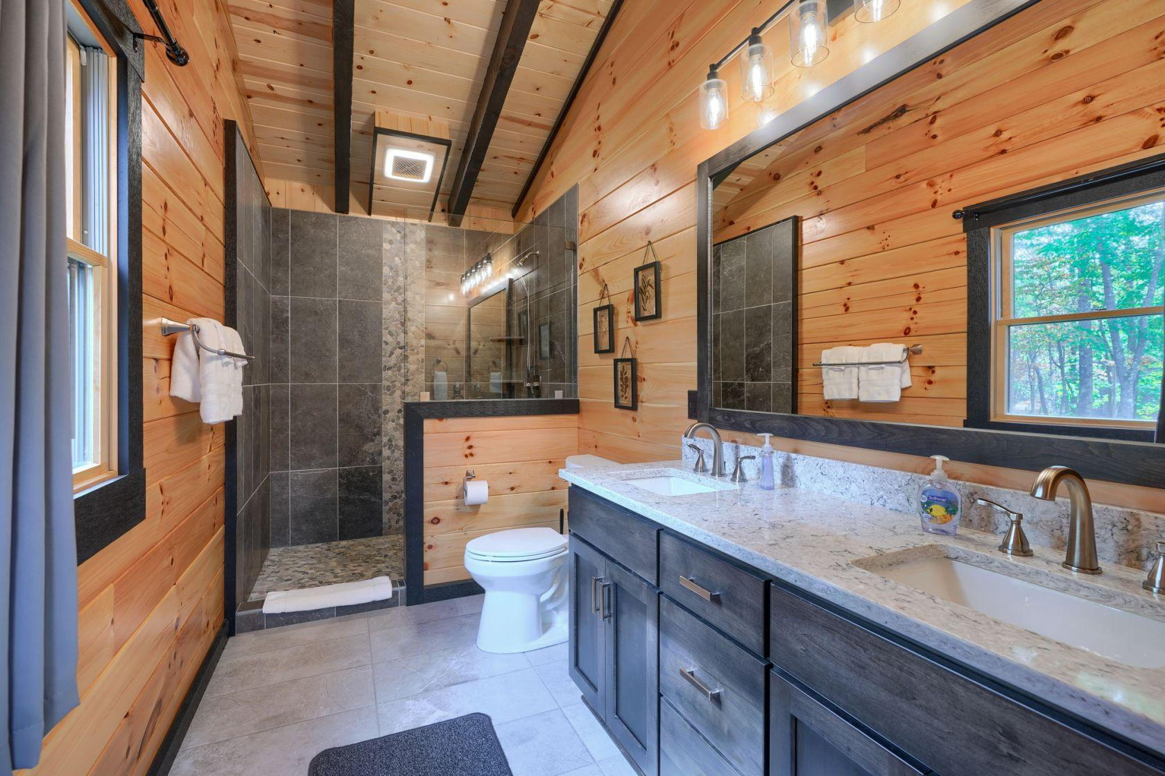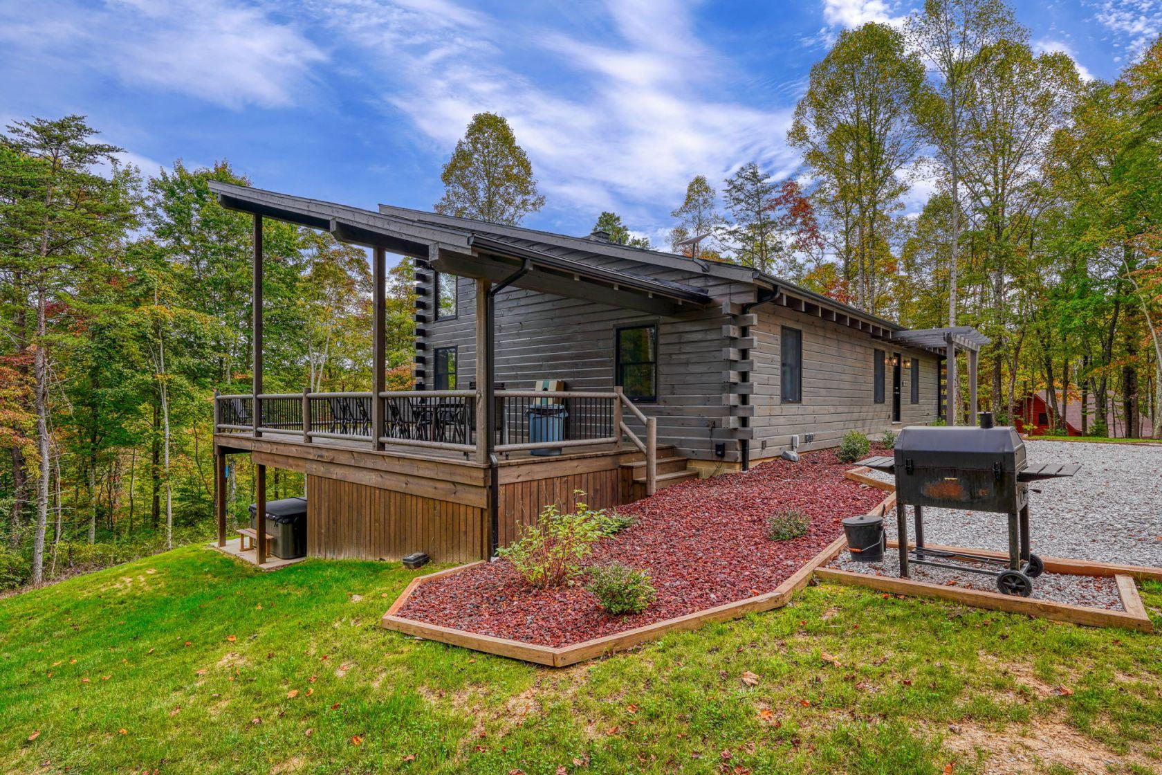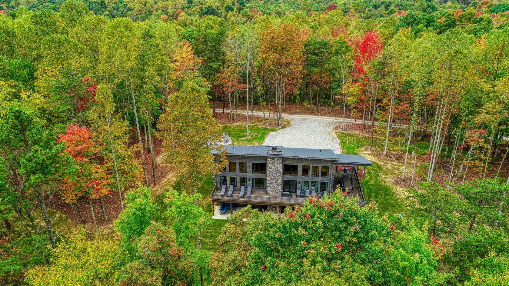 Gray Ridge is located on 25 wooded acres within walking distance of Old Man's Cave. The cabin has 6 bedrooms and 4 bathrooms.