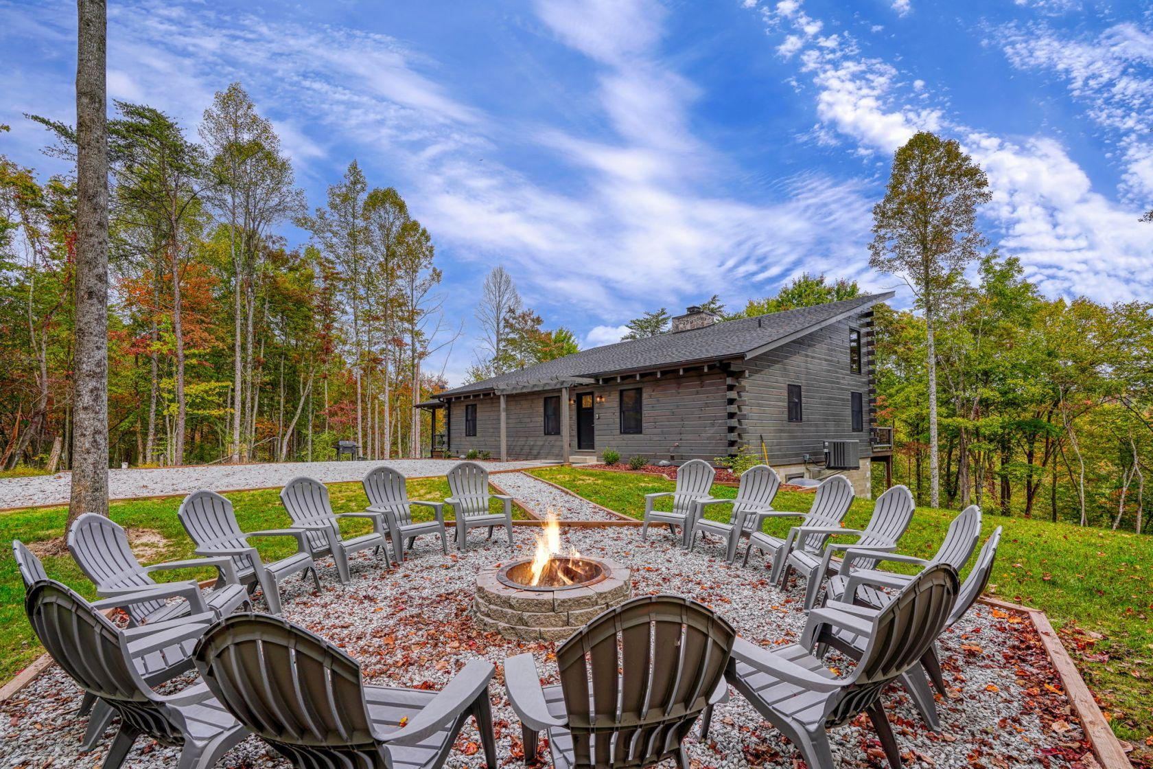 - Fire pit with Adirondack chairs