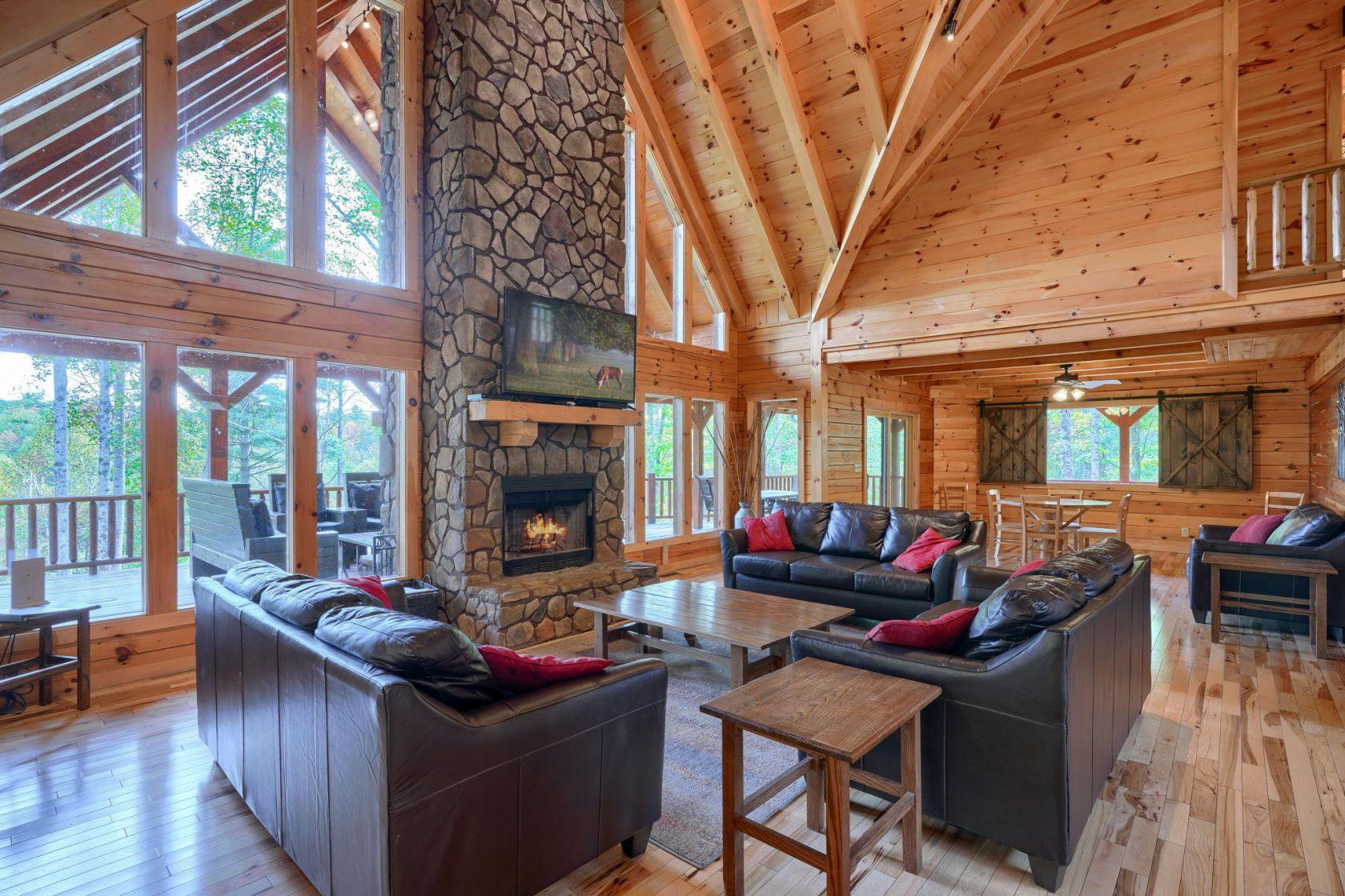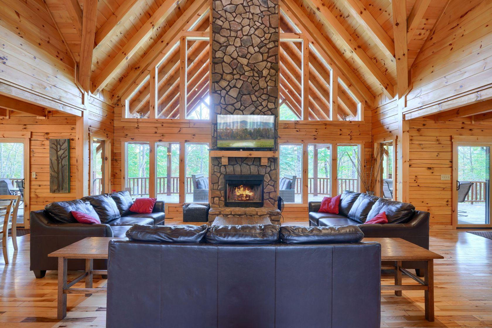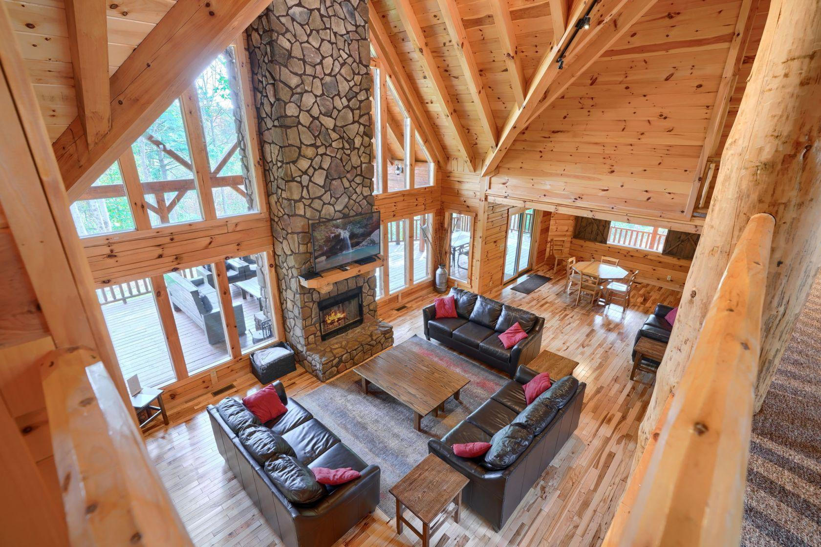Sleeps up to 20 guests in 8 bedrooms and 5.5 baths. There is over 2300 sqft of covered deck and has a wood burning fireplace inside and out on the deck!
